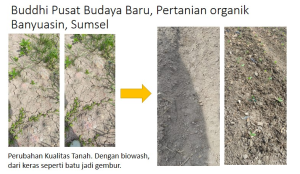 Lahan Kebun Buddhi merupakan lahan timbun dengan tekstur tanah cenderung liat dan keras. Untuk mengatasi hal tersebut Kebun Buddhi menggunakan Biowash Promic sebagai racikan multifungsi sebagai pengolahan sampah organik dalam waktu 1 detik dijadikan media tanam dan pupuk.