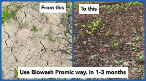 Hasil tanah yang gersang dan keras dalam 1-3 bulan berubah menjadi tanah subur. Biowash Promic dengan olah sampah 1 detiknya mampu memulihkan tanah dan menebalkan unsur hara tanah.